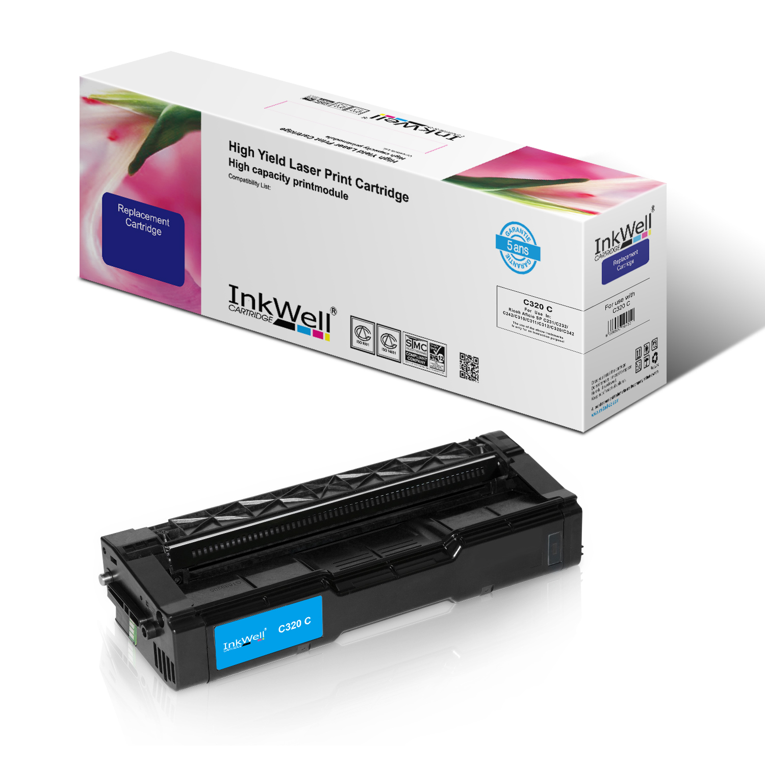 Cartouche Toner Laser Cyan Compatible avec les imprimantes RICOH AFICIO SP C231N / AFICIO SP C242D / AFICIO SP C242SF / AFICIO SP C320D / SP C231N / SP C231SF / SP C232D / SP C232SF / SP C232SFN / SP C310HE / SP C311N / SP C312D