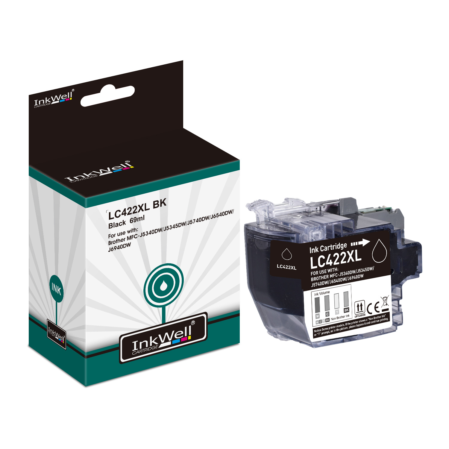 Cartouche d'encre noire compatibleBrother LC422XLBK - Cartouche seule. Imprime jusqu'à 3000 pages.