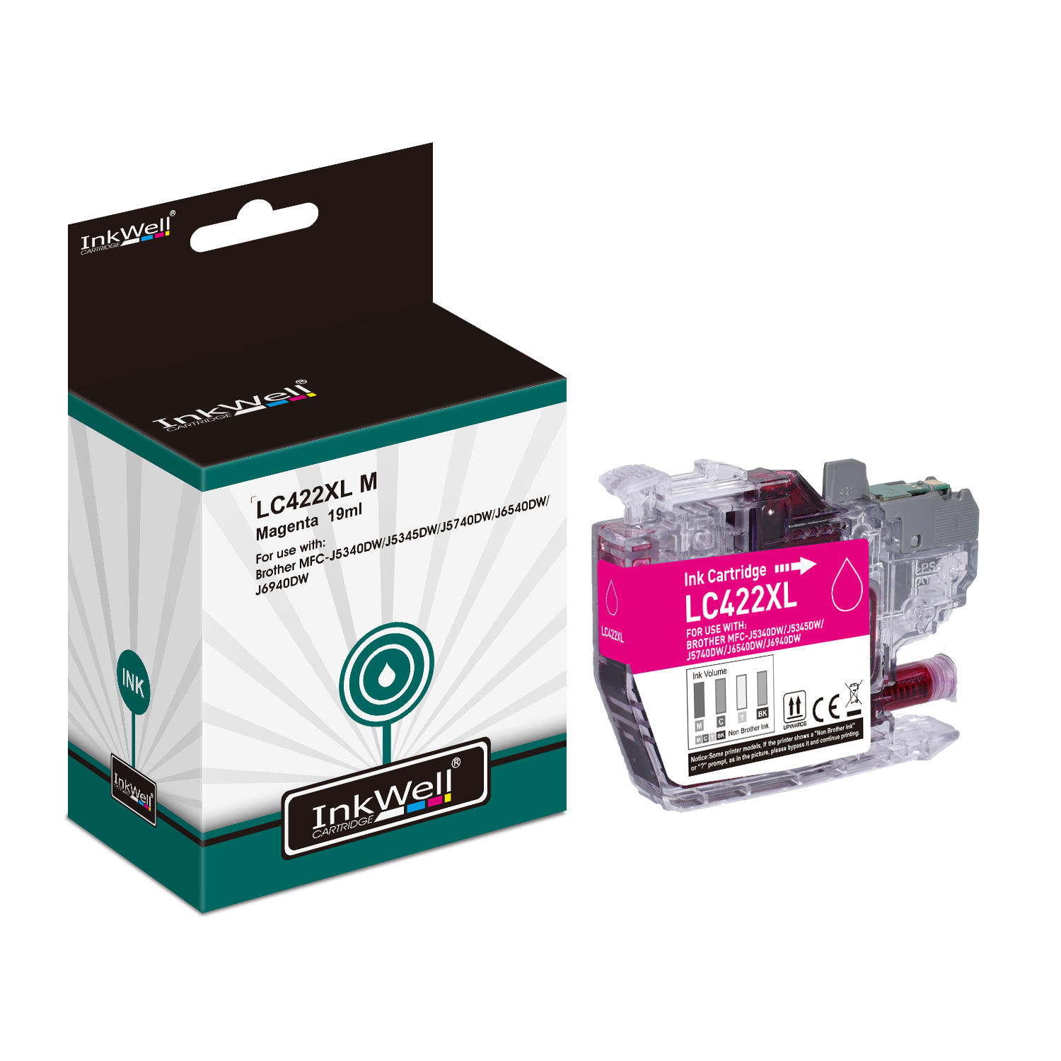 Cartouche d'encre Magenta compatible Brother LC422XLM - Cartouche seule. Imprime jusqu'à 1500 pages.