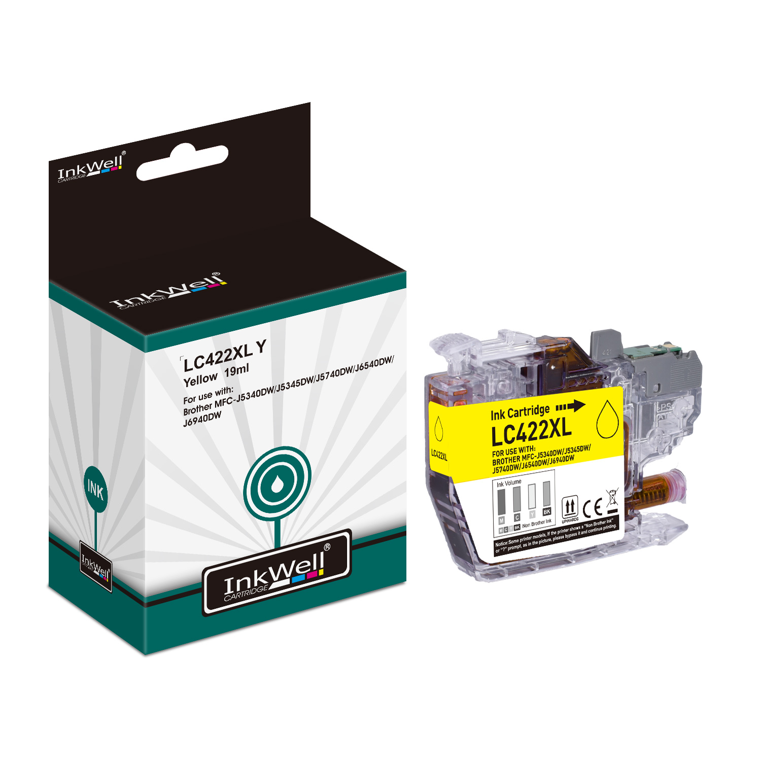 Cartouche d'encre Yellow compatible Brother LC422XLY - Cartouche seule. Imprime jusqu'à 1500 pages.